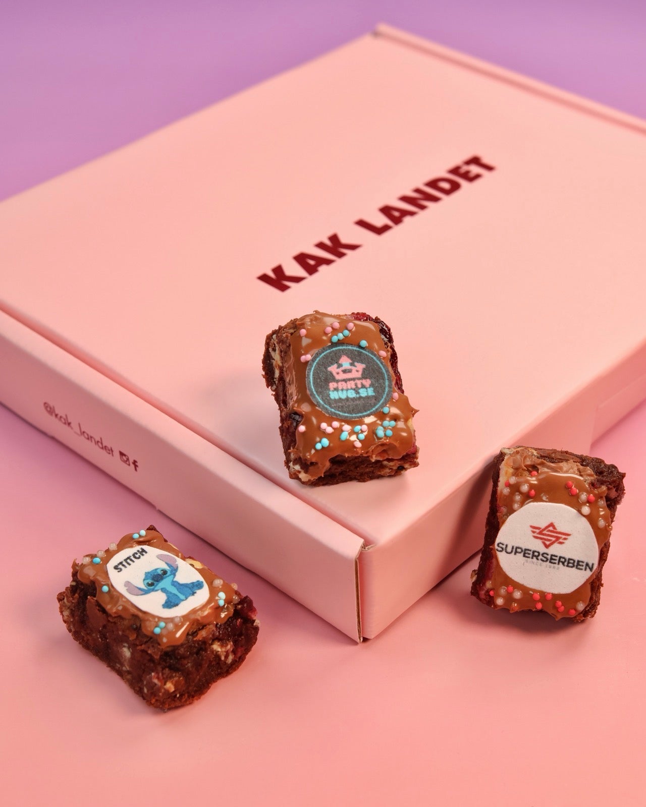 Lägg till ditt personliga meddelande på våra läckra brownies för en verkligt unik godsak. Perfekt för alla tillfällen – våra brownies förmedlar ditt budskap på det sötaste sättet. Beställ nu och dela ditt meddelande på en brownie!
