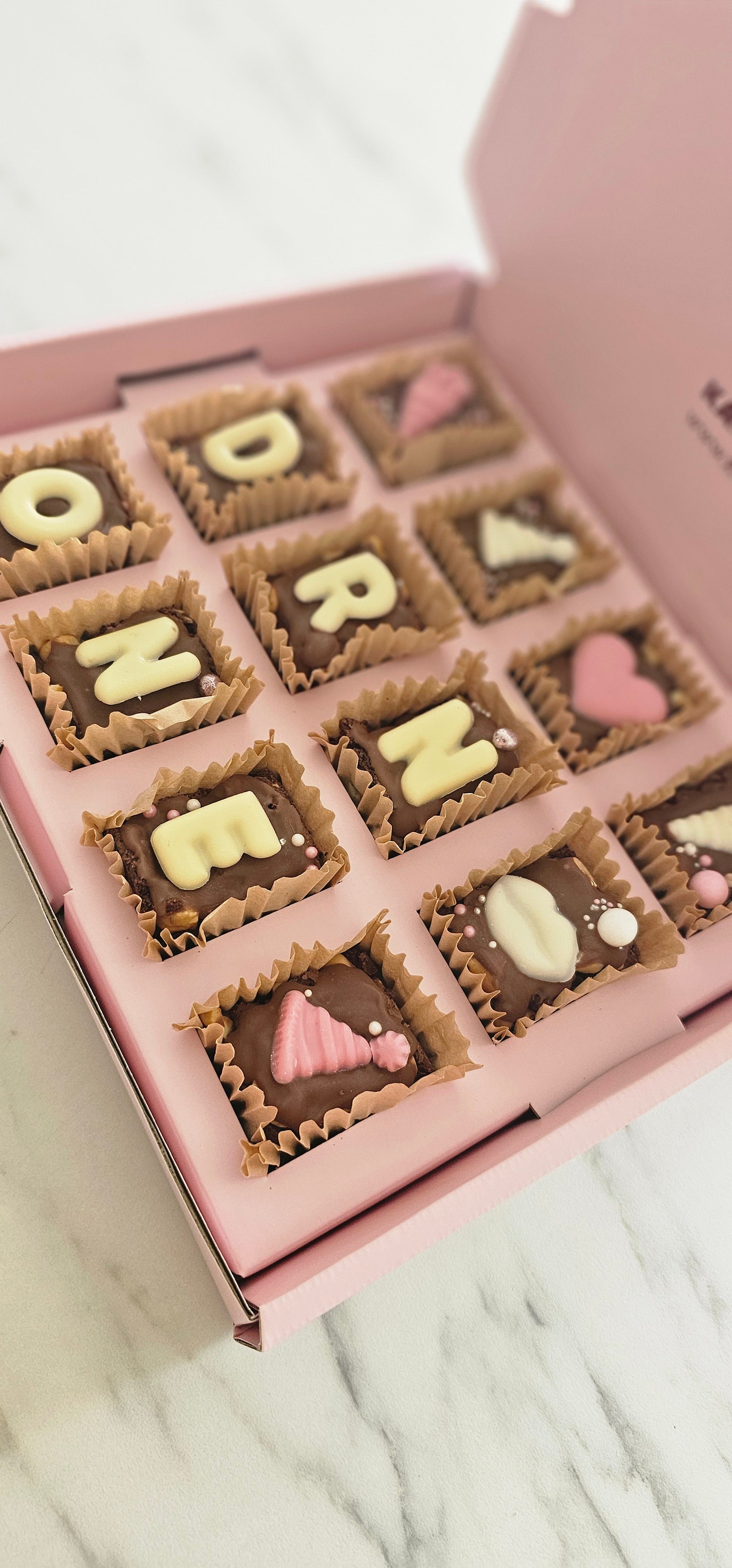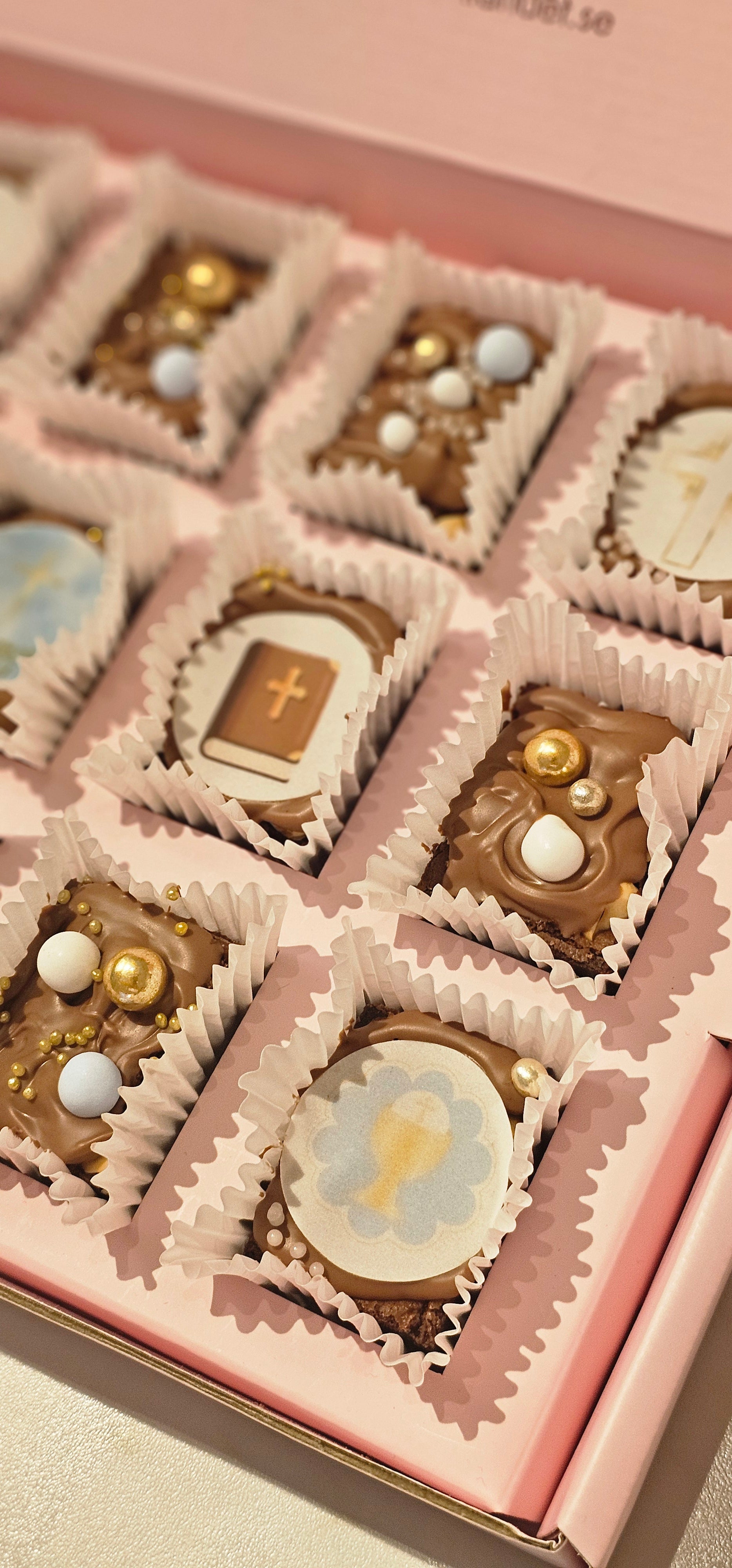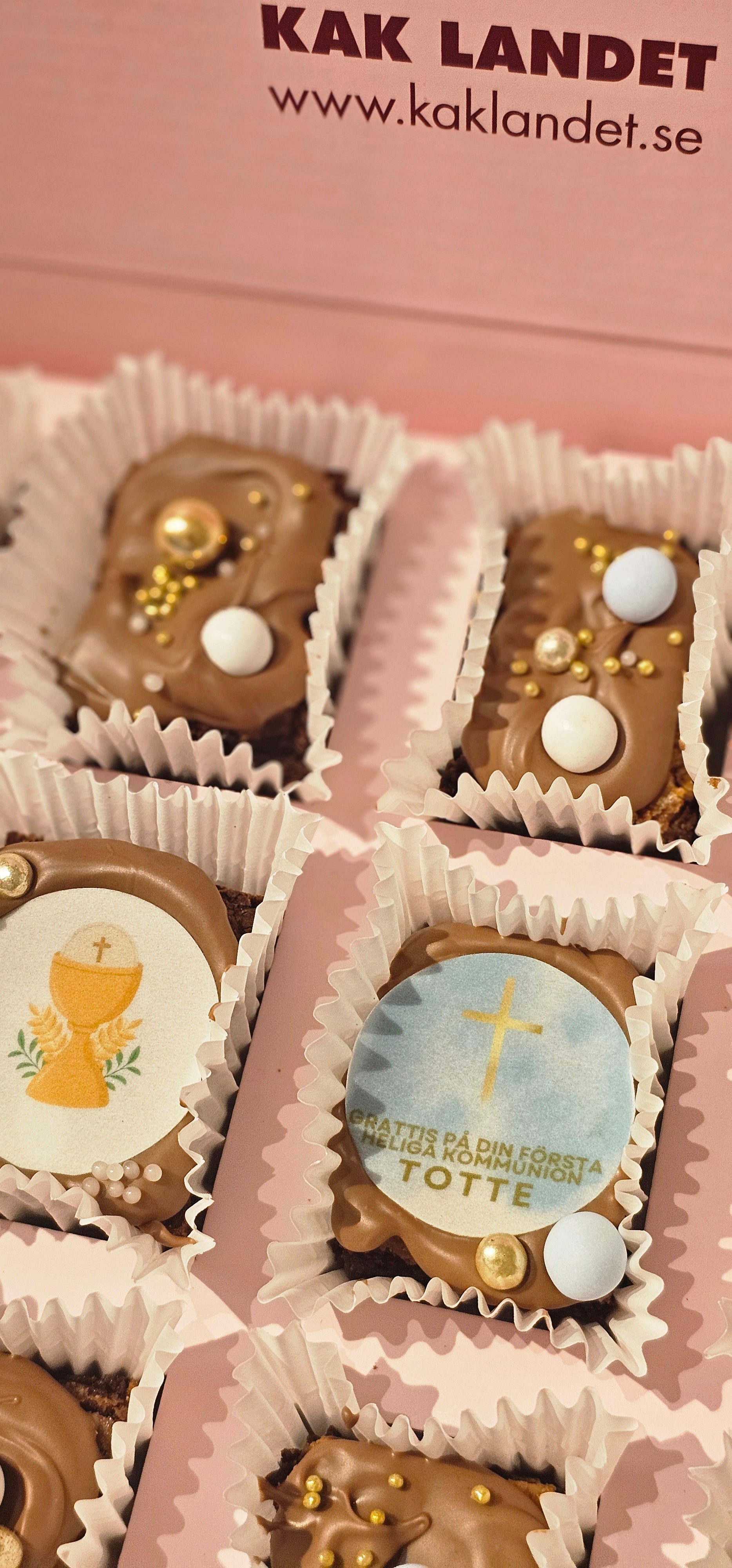 Lägg till ditt personliga meddelande på våra läckra brownies för en verkligt unik godsak. Perfekt för alla tillfällen – våra brownies förmedlar ditt budskap på det sötaste sättet. Beställ nu och dela ditt meddelande på en brownie! ✨