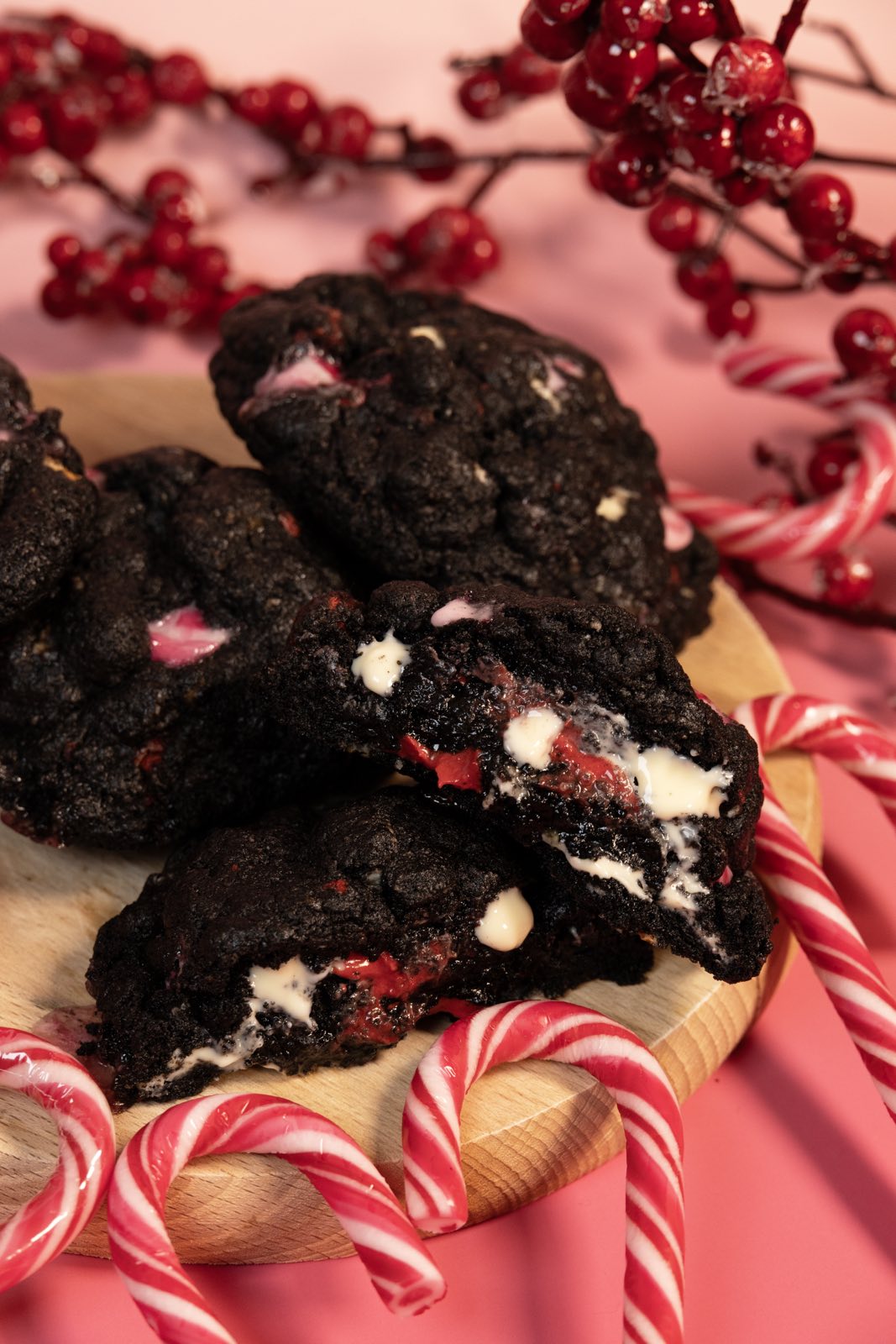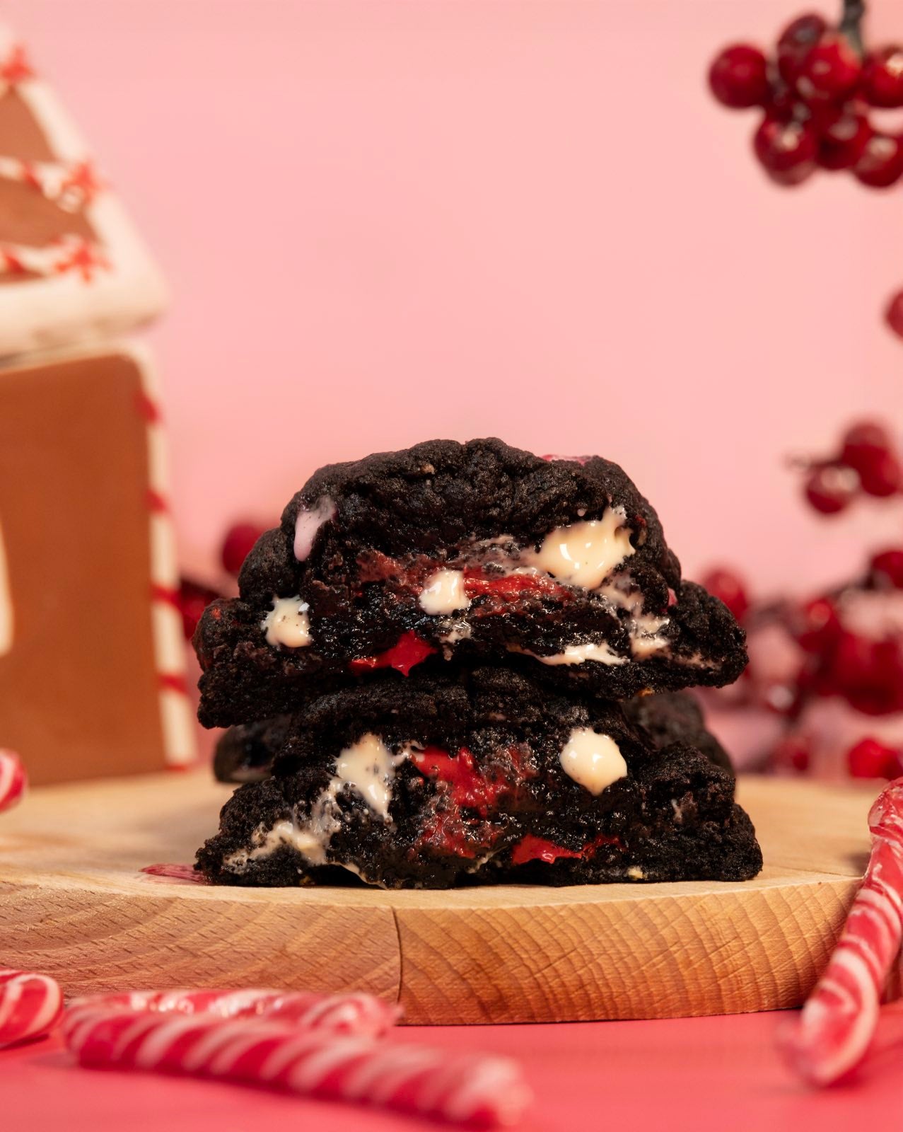 Gjord med fyllig svart kakao som ger kakan sin naturliga mörka färg, smaksatt med frisk pepparmint och fylld med krämig vit choklad. I smeten blandas även fint krossade polkagrisar som ger både smak och lätt crunch.
