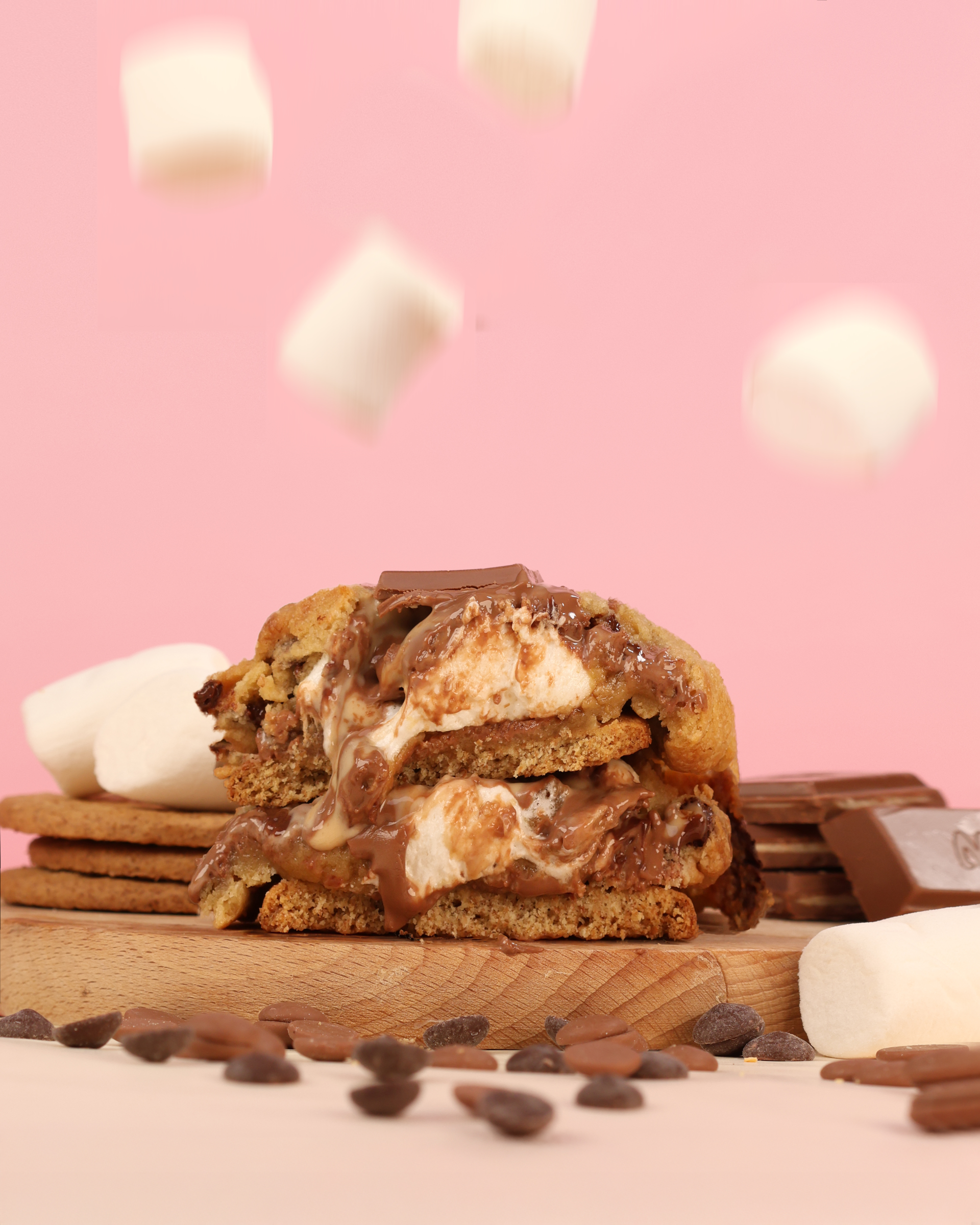 Gjord med mjuk marshmallow, ett krispigt bottenlager av grahamkex, belgiska mjölk- och mörk chokladknappar och toppad med en bit av den bästa Marabou-chokladen.