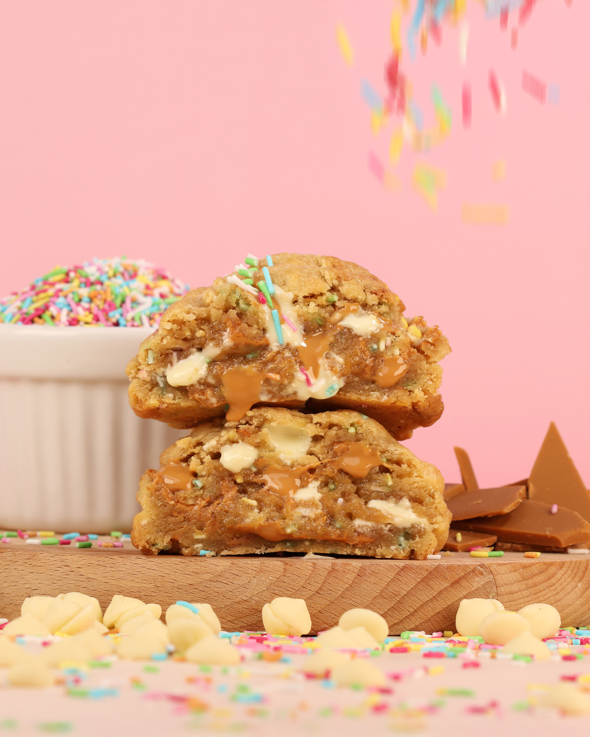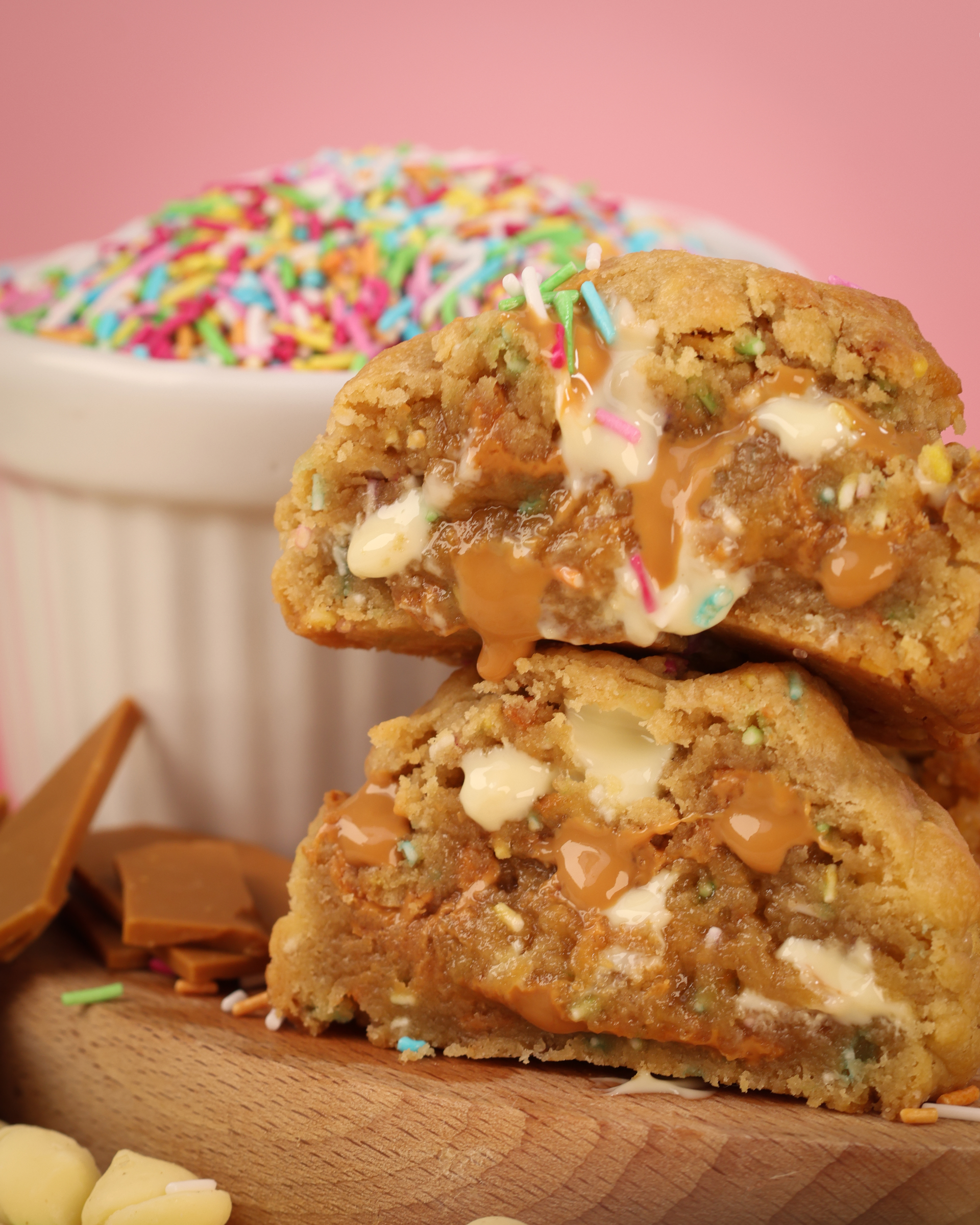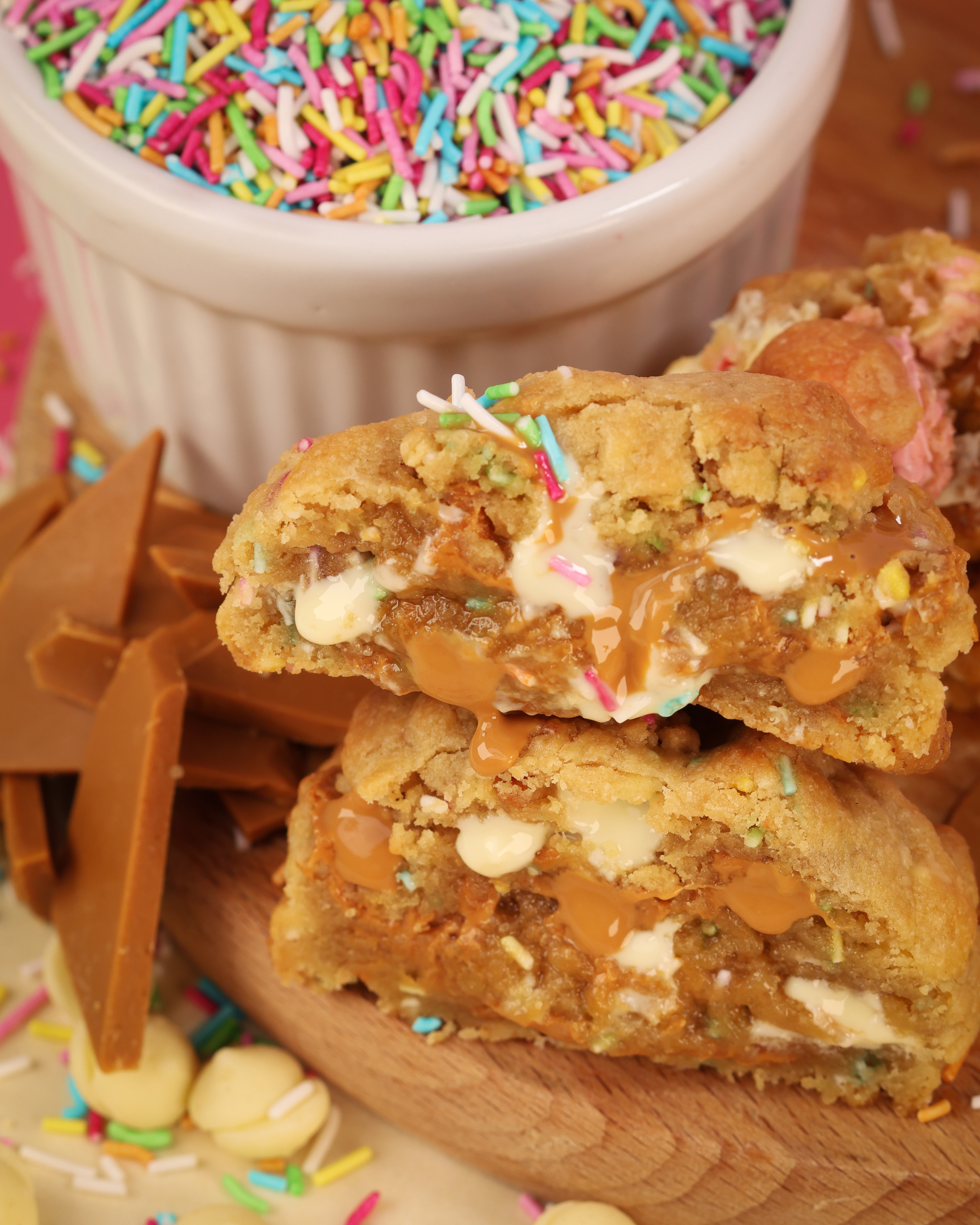 Gjord med rejäla bitar av vår egen hemmagjorda karamelliserade vita choklad och vita